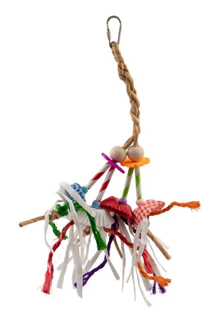 The Beaks Cheerful Mix Bird toys are mixed materials toys designed for fascination and entertainment of larger caged birds