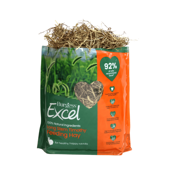 Burgess Excel Long Stem Feeding Hay is Timothy Hay designed to be a perfect part of your rabbits’ diet.