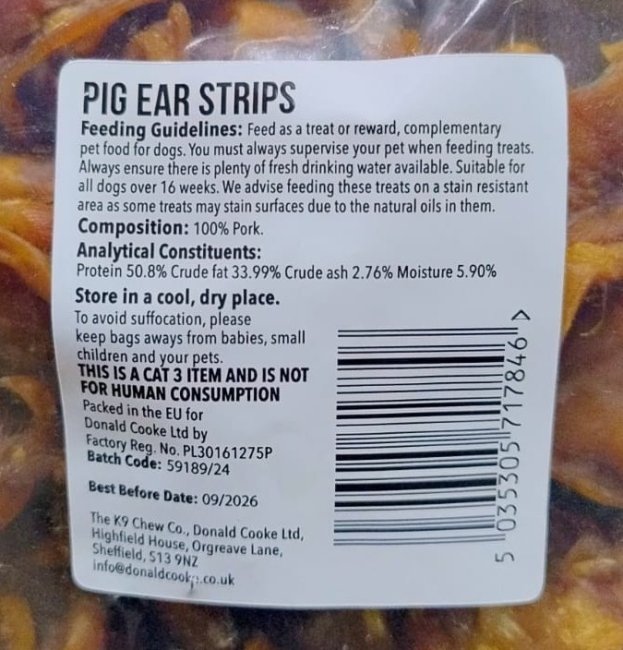K9 Chew Co. Pigs Ear Strips 400g x 1